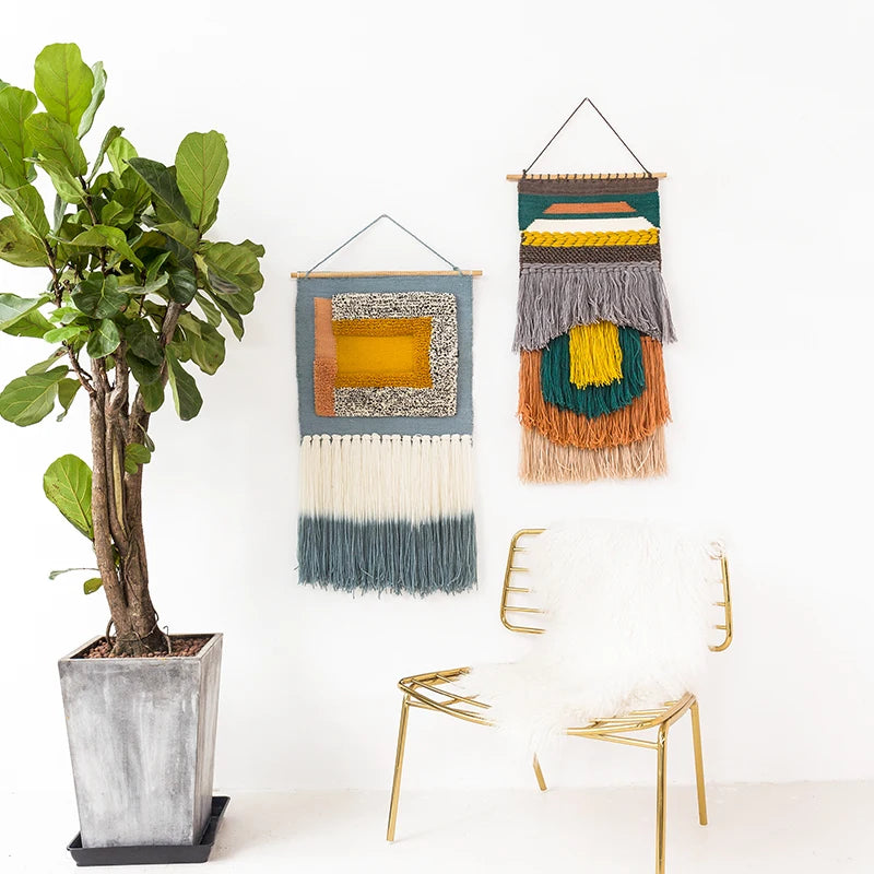Name: Hand woven tufted macrame tapestry